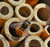 Met het warme weer van de afgelopen dagen verschijnen ook de eerste bijen, hommels en vlinders. Veel mensen hebben een insectenhotel in de tuin met daarin een aantal holle stengels, daar zijn nu de metselbijtjes te zien, op zoek naar een plekje om de eitjes af te zetten. Meestal gaat het om de gehoornde metselbij, herkenbaar aan zijn lange sprieten. Als het nestje voltooid is wordt het afgesloten met klei of zand, vandaar de naam metselbij.